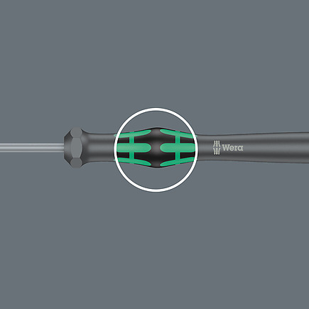 Kraftform Kompakt Micro-Set für feinmechanische Anwendungen. Geeignet für die Aufnahme von Bits mit 4 mm Halfmoon-Antrieb (Wera Reihe 9) und Bits mit 4 mm HIOS-Antrieb (Wera Reihe 21). Griff-/Wechselklingen-System für blitzschnellen Klingenaustausch. Kraftform Micro Griff mit drehbarer Kappe und Schnelldrehzone für blitzschnelles Zwirbeln. Kein zeitintensives Umgreifen mehr nötig. Kraftzone mit integrierten Weichzonen zur Übertragung hoher Löse- und Anzugsmomente. Präzisionszone direkt über der Klinge für den richtigen Drehwinkel bei Justierarbeiten. Mit 10 Bits für hand- und maschinenbetätigte Verschraubungen. Blitzschnelle Bit-Fixierung: Bit einfach in die Aufnahme schieben, selbsttätige Verriegelung, sicherer Sitz. Zum Bitwechsel Hülse einfach nach vorne schieben und Bit entnehmen. Freilaufende Betätigungshülse zur einfachen Führung des Werkzeugs während des Schraubvorgangs