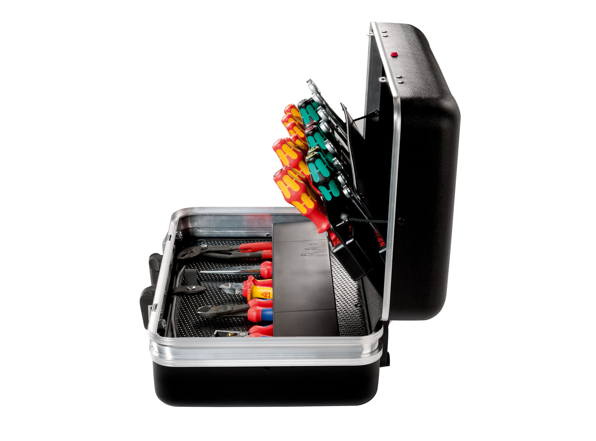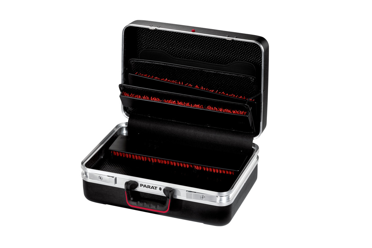 Mit diesem intelligenten Ordnungssystem hat das aufwendige Einsortieren von Werkzeug ein Ende: Als einziger Hersteller bietet PARAT spezielle Koffer mit dem exklusiven Werkzeughaltersystem CP-7. Durch eine praktische Klemmwirkung gelingt das einfache Verstauen von Geräten, ohne dass diese extra in eine genähte Separation eingeführt werden müssen. Dank CP-7 lassen sich Werkzeuge an jeder beliebigen Stelle flexibel einstecken – wo sie zwischen hochwertigen Kunststoffborsten auf einer rutschfesten Unterlage sicher aufgehoben sind. Alles lässt sich also ruck, zuck verstauen und ist natürlich auch sofort wieder griffbereit. Gleichzeitig bleibt das Werkzeug jederzeit sicher und ordentlich verstaut – selbst dann, wenn der Koffer herunterfällt oder auf dem Kopf steht.