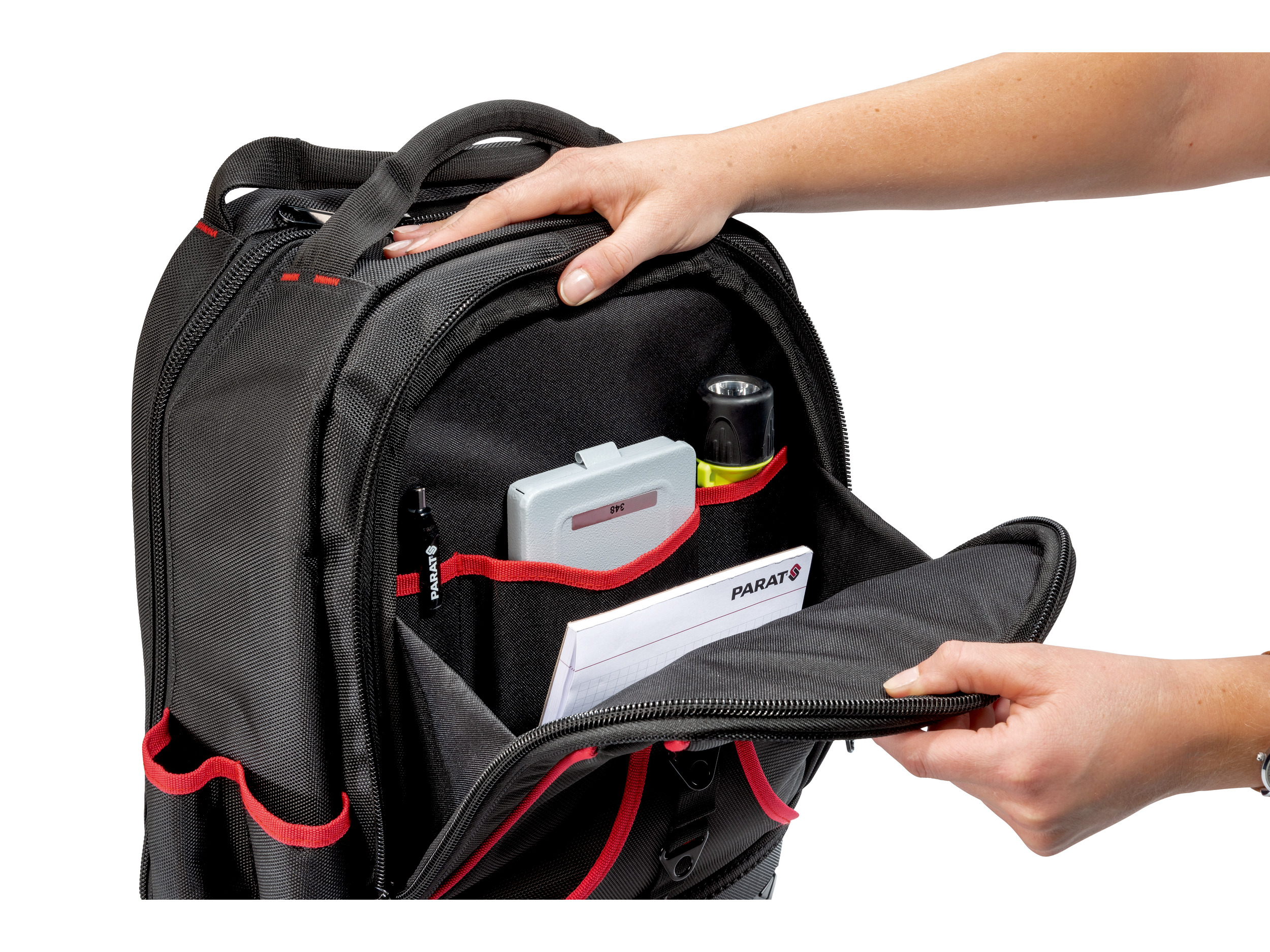 Im praktischen BASIC Back Pack finden bis zu 50 Werkzeuge in 15 Einsteckfächern, 6 Gummischlaufen und 4 weiteren großzügigen Staufächern sowie ein Laptop bis 14″ in separatem Fach ihren Platz. Zusätzlich sorgen ein separater Maßbandhalter und ein Schlüsselanhänger für Ordnung. Der Rucksack BASIC Back Pack besteht aus hochwertig verarbeitetem Nylon. Der kunststoffverstärkte Boden schützt vor Abnutzung und macht den Rucksack extrem langlebig. Zudem lässt sich der PARAT BASIC Back Pack durch die gepolsterte Rückwand und den gepolsterten Schulterriemen bequem transportieren.